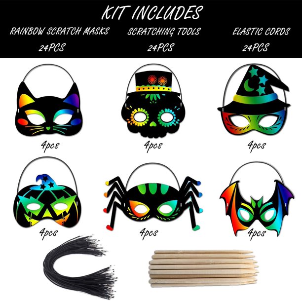 Halloween Party Favors Halloween Crafts 24pcs Magic Rainbow Scratch Art Masks Kits Bulk Skeleton Cat Witch Pumpkin Bat Spider Decorations For Kids Ages 3 5 4 8 Classroom Birthday Party Walmart Ca